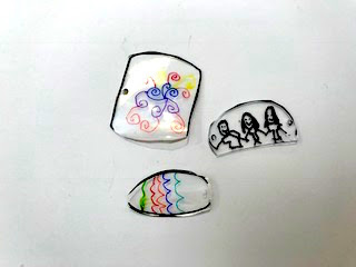 Place your art pieces on aluminium foil, preheat oven to 325 F. Place the pieces in the oven for 2-3 mins. It is super fun to watch them shrink! Don't leave them in too long.