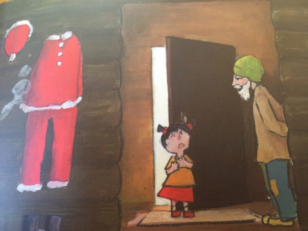 As the girl reaches the top she finds her bear and comes running down the stairs. The stairs unfold and tumble out which was the most delightful part of the book.