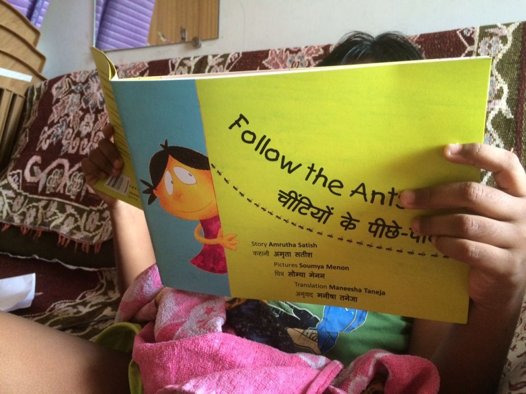 Bilingual books are all the more powerful if they run in parallel with STEM lessons that children learn in school. In this book published by Ekalavya, children learn about sowing a seed and how plants grow. A simple but essential concept like germination, when told in a mother tongue or a different language, can really get those neurons firing away!