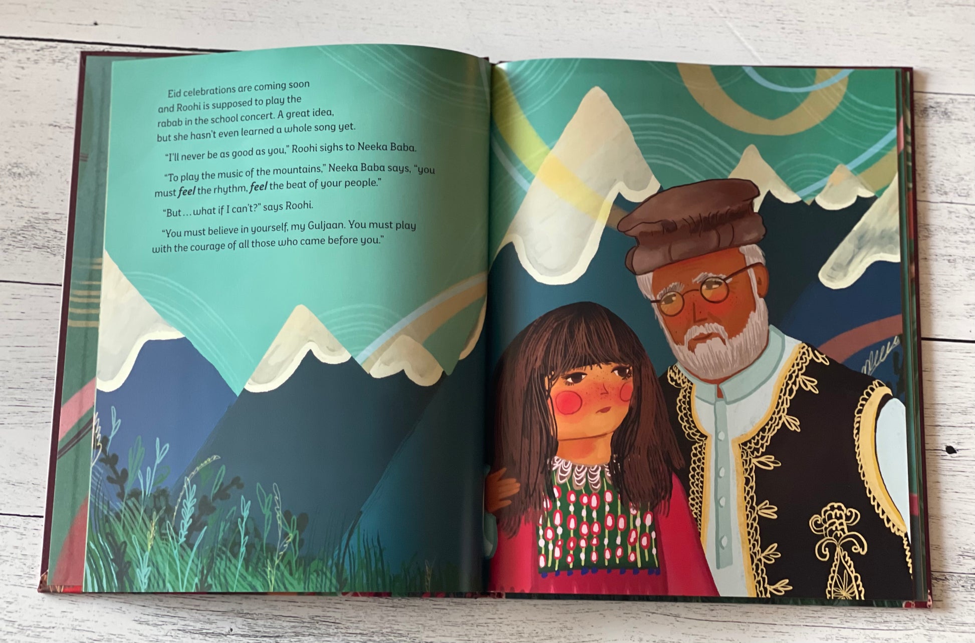 Roohi's most treasured time of the day is when she gets to listen to her grandfather play the rabab, the traditional stringed instrument of the Pashtun people. All she wants, more than anything in the world, is to be able to play songs full of rhythm like him. But even with lessons everyday, she sounds nothing like Neeka Baba's clap-de-clap-clap rhythm and beautiful melodies.