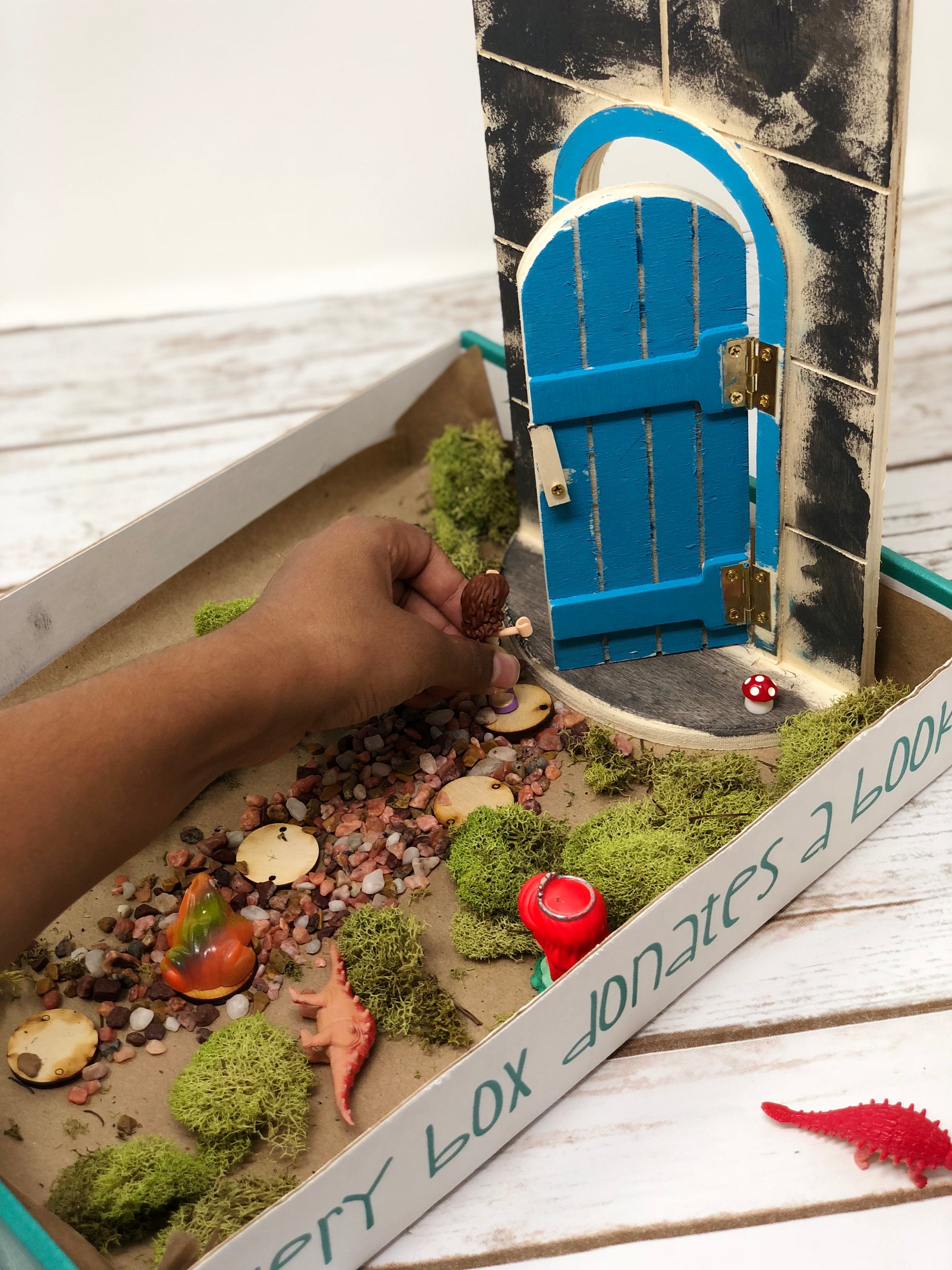 This month’s box comes with a starter kit for a fairy garden. The kit is open ended, leaving the design to the child’s imagination. Will fairies live here? Or will it be a miniature dinosaur forest or will it be a door to a leprechaun’s lair?