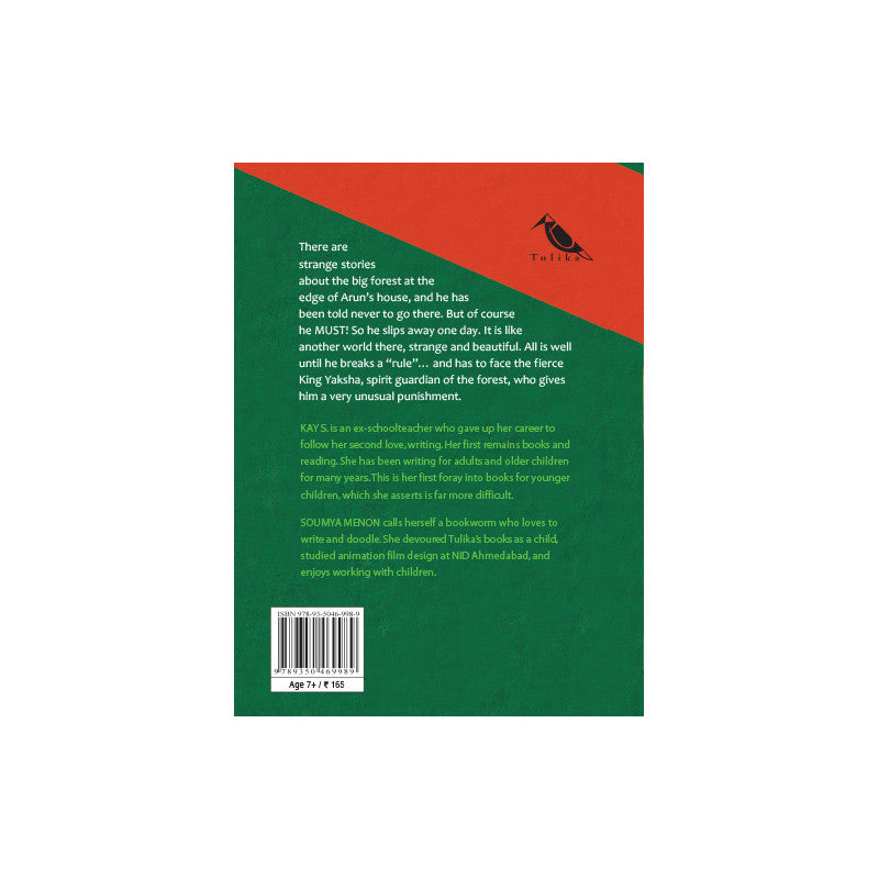 There are strange stories about the big forest at the edge of Arun’s house, and he has been told never to go there. But of course he MUST! So he slips away one day. It is like another world there, strange and beautiful. All is well until he breaks a “rule”… and has to face the fierce King Yaksha, spirit guardian of the forest, who gives him a very unusual punishment.
