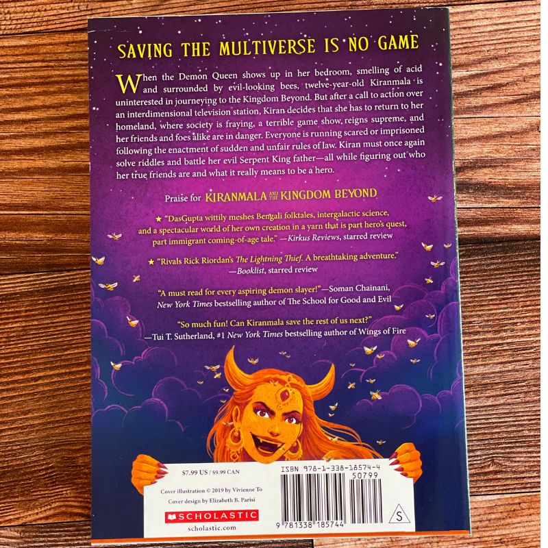 Saving the multiverse is no game in this New York Times bestseller!When the Demon Queen shows up in her bedroom, smelling of acid and surrounded by evil-looking bees, twelve-year-old Kiranmala is uninterested. After all, it's been weeks since she last heard from her friends in the Kingdom Beyond, the alternate dimension where she was born as an Indian princess. But after a call to action over an interdimensional television station and a visit with some all-seeing birds, Kiran decides that she has to once again return to her homeland, where society is fraying, a terrible game show reigns supreme, and friends and foes alike are in danger. Everyone is running scared or imprisoned following the enactment of sudden and unfair rules of law.However, things are a lot less clear than the last time she was in the Kingdom Beyond. Kiran must once again solve riddles and battle her evil Serpent King father -- all while figuring out who her true friends are, and what it really means to be a hero.