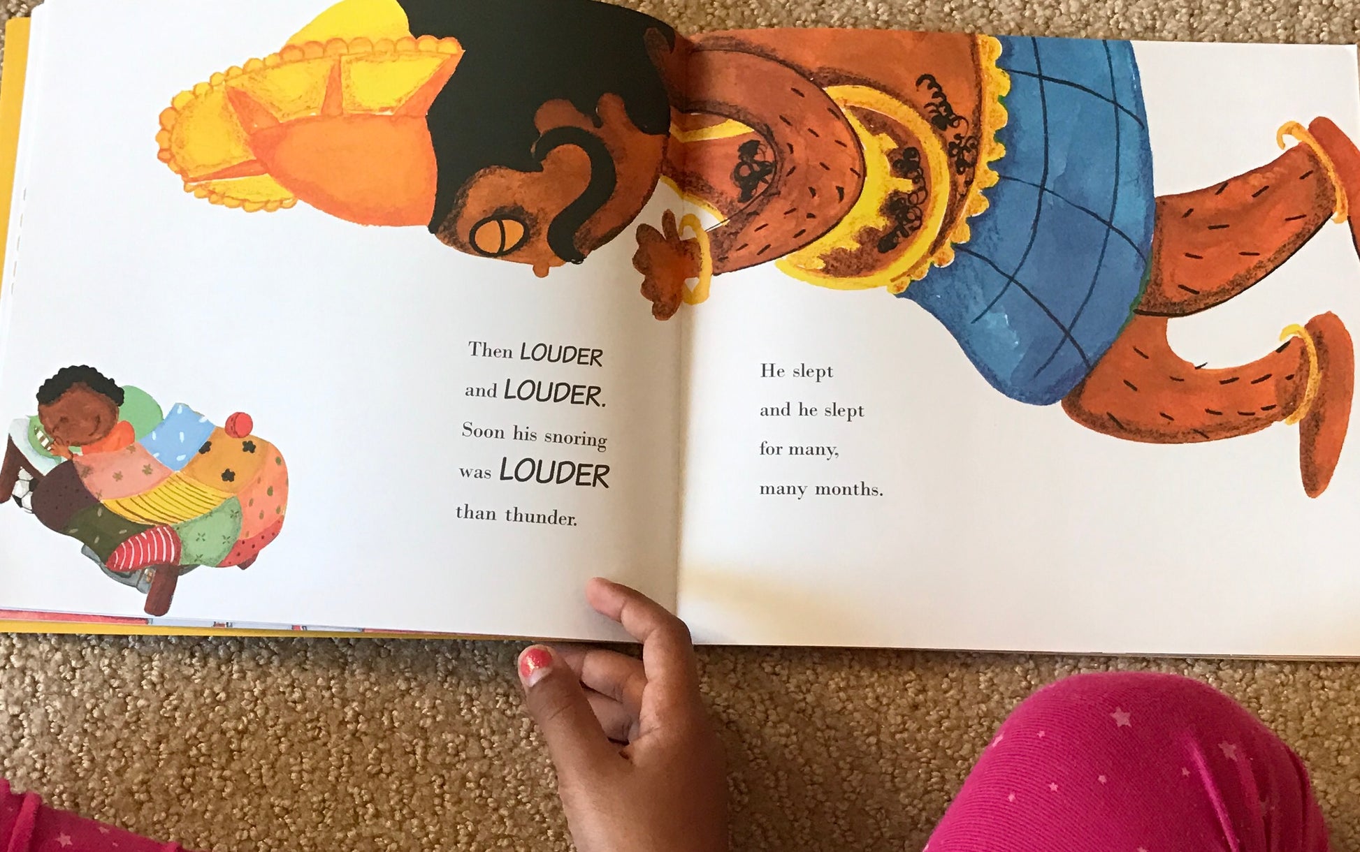 Kukku falls asleep to his favourite story about the giant Kumbhakarna who sleeps non-stop for six months. A lively retelling of an episode from the Ramayana, with rib-tickling pictures.